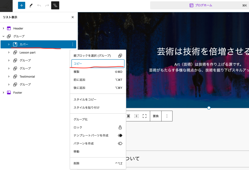 Blockのパーツやグループをそのままコピーして使える